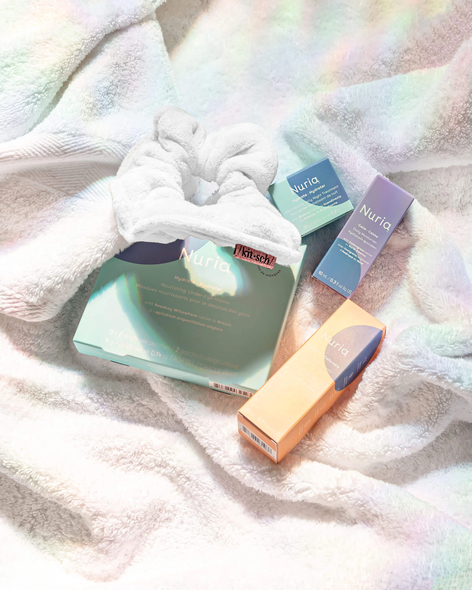 Say goodbye to dull skin and get a refreshed complexion with this exclusive kit. A simple ritual designed to give your skin a new beginning and reclaim your glow, this set includes 4 skin-nourishing favorites, plus a pair of Kitsch natural, highly absorbent, microfiber towel scrunchies to make your me-time even easier!